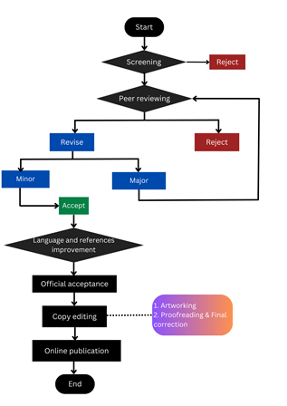 - Artworking: Officially accepted manuscripts will be formatted as an artwork and proofread by the journal.